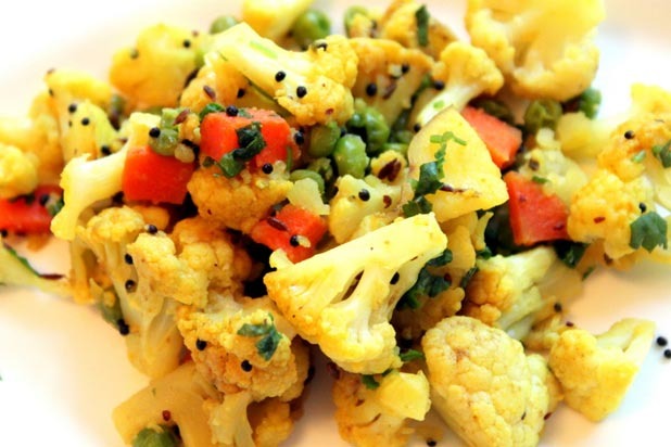 Indian Cauliflower "Sabji" with Peas and Carrots