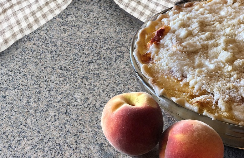 Seen as old-fashioned in the past, this peach pie gets a progressive twist with the addition of vanilla yogurt. Can't find fresh peaches? This is a dish you can make out of cans.