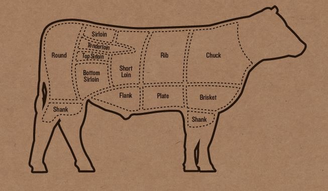 Chuck comes from the shoulder of the cow — where pot roasts and stew meat also originate — where a good amount of fat swirls through the meat. This cut is known for its buttery flavor.