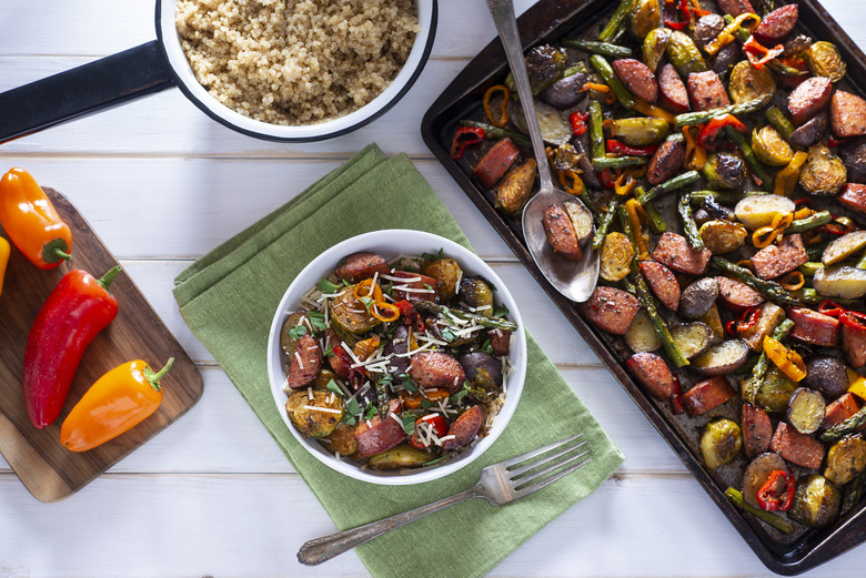 Chicken is probably the most versatile meat protein. You can slow cook it, fry it, grill it or try any of these 101 ways to cook chicken. If you're just starting, we recommend learning how to bake chicken in an oven. All you have to do is season the chicken with a mixture of garlic powder, paprika, salt and pepper, place it on a pan and bake at 425F until the meat is tender. Now you have baked chicken that you can serve with steamed veggies, on a salad or in your favorite pasta dish. You also can add some diced potatoes, carrots and other vegetables to the pan while the chicken is baking to create a delicious sheet pan dinner for any day of the week.