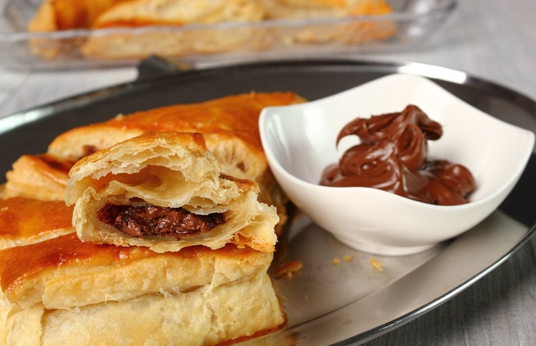 Nutella can add a bright spot to any day, so whether you use the store-bought spread or make your own chocolate-hazelnut delight, these croissants shouldn't be missed. Spread a thin layer of the Nutella to cover one-side of the triangle of dough, and then loosely roll up your croissant. Bake at 375 degrees F for about 20 minutes or until golden brown.