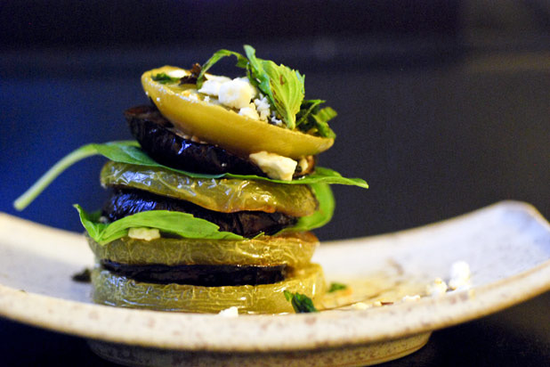 Roasted Green Tomatoes and Eggplant Stacks