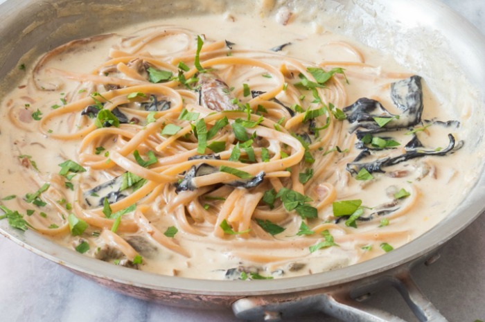 Alfredo isn't the first thing that comes to mind when you are thinking of something healthy to eat, but this whole-wheat pasta version is made creamy and rich with light whipped cream cheese. Click here to see the recipe.