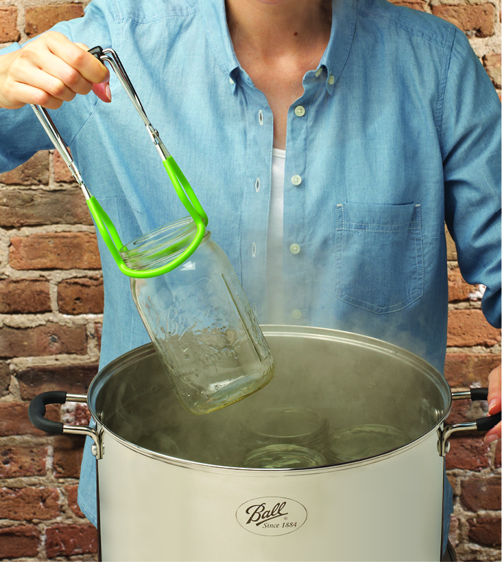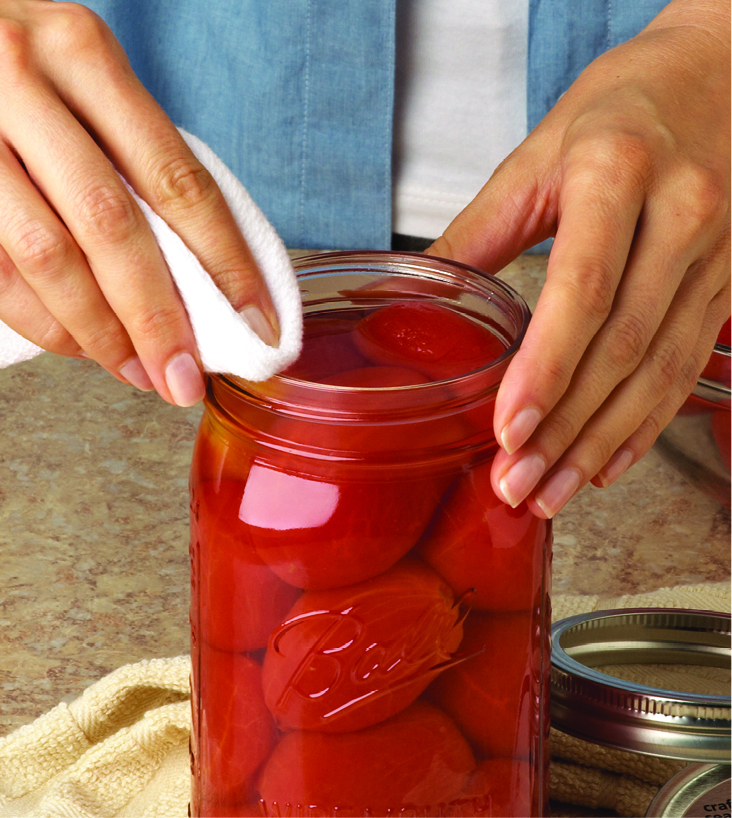 - Clean mason jar rim and threads of jar to remove any food residue. Center lid on jar. Apply band and adjust until finger-tip tight. Place filled jar back in canner or pot. Repeat steps 4 and 5 until each jar has been filled & placed in the canner. Lower rack with jars into water. Make sure water covers jars by 1-2 inches.