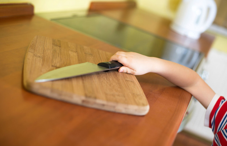 Check for sharp objects (like knives, graters, and can openers) that are not only within your child's reach but that could be if they climbed up on a step stool or chair (even young children are capable of more climbing than most parents realize). If you have a knife block, consider buying cases for the individual knives and storing them in a drawer. Even better? Lock the drawer with a child-proof lock.