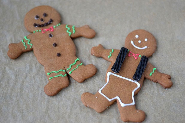 The greatest thing about decorating gingerbread men is that pretty much every round candy works. Here, we played around with a few varieties, like gum drops and cinnamon candies, to outfit our men, and got creative with the icing for their collars and cuffs.