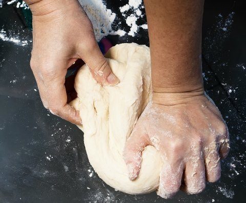 Knead the dough by hand for about 5 minutes on a lightly floured surface. Then, form the dough into a ball.