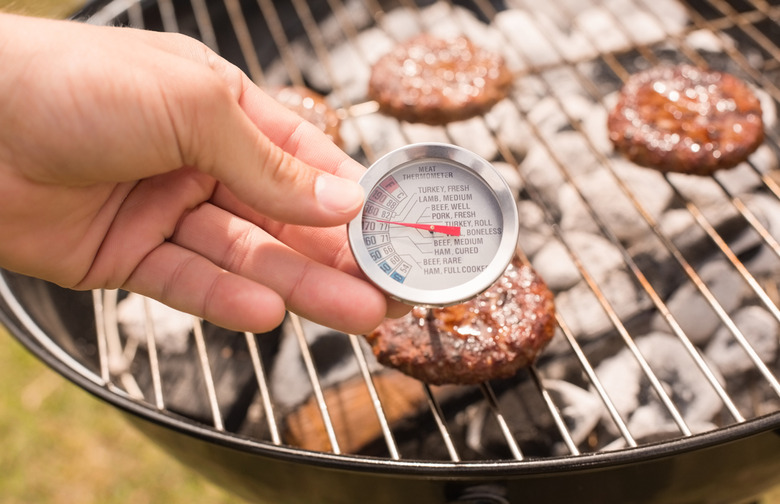 The poke test might look cool, but most of us can't accurately decipher the results. Instead, use an instant-read thermometer so your burgers turn out the right temperature every time. Carryover temperature isn't usually something to worry about when cooking burgers less than eight ounces. Click here for the USDA cooking temperature guidelines.