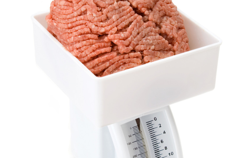 With the same idea of keeping the meat cool and the fat intact, don't overwork the meat. Once you have your meat ground to the right consistency, pull out your scale, and weigh five- to six-ounce portions of meat.