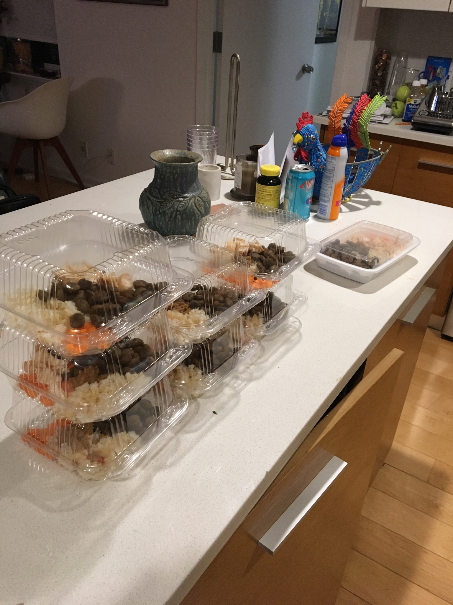 That night I went into full kitchen action as Freddie's beady little eyes watched and nose twitched at all the exciting sights and smells swirled around him. He must have known it was all for him, because he didn't even beg.