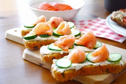 Smashed or sliced bananas are the perfect all-natural toast topper. Add a few chopped nuts for protein and a pinch of cinnamon for spice and you have the perfect sweet and salty breakfast-on-the-go.