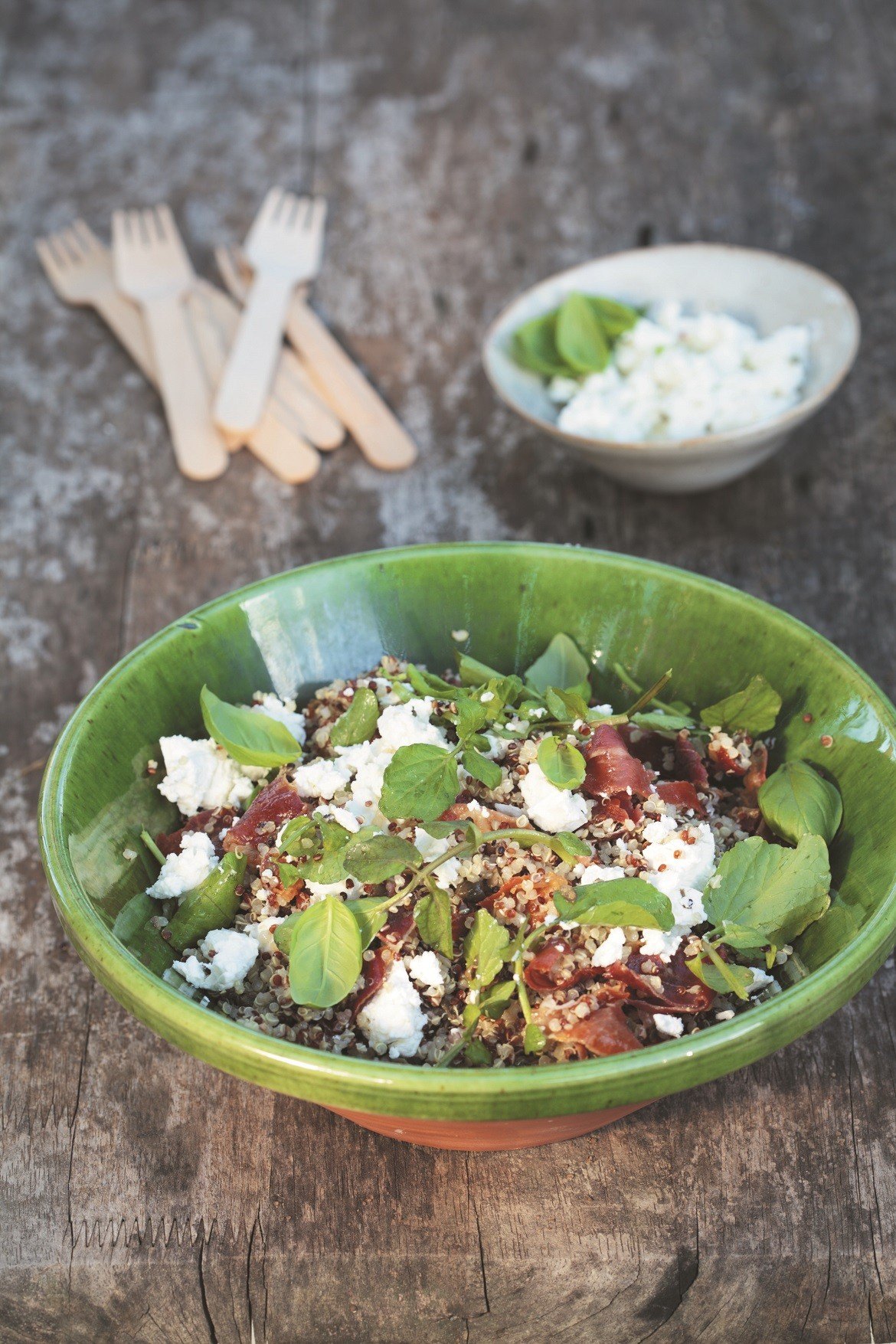 — Quinoa Salad with Goat's Cheese, Basil and Crispy Prosciutto