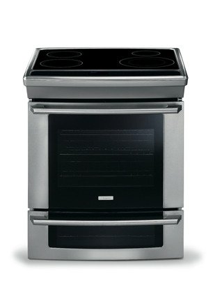 With 70% more efficiency than gas and 20% more efficiency than electric, induction ranges are quickly gaining popularity as the stoves of the future. (Less energy is lost with induction cooking as the heat is transferred directly to the cookware.) With a sleek and elegant touch screen control panel, which fades away when not being used, this cooktop boils water in 90 seconds and comes with expandable burners to fit two different cookware sizes.