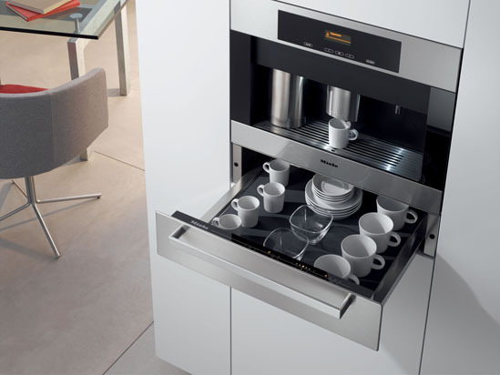 A built-in coffee unit with a plumbed-in water connection, this whole bean system comes with an optional warming drawer for cups and plates. The product also features a frothing system with an integrated milk tank, adjustable cup size, and grinder settings.