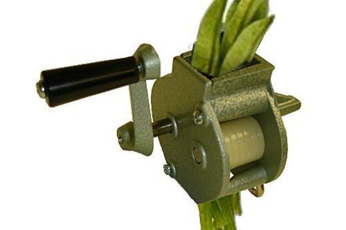 Do you crave evenly sliced haricots verts with dinner? Then you will wish you had this green bean slicer. Don't waste time with a knife — just run your beans through this hand-cranked tool for perfectly sliced vegetables night after night. This 1950s kitchen gadget was made by the Peter Dienes company in Holland.