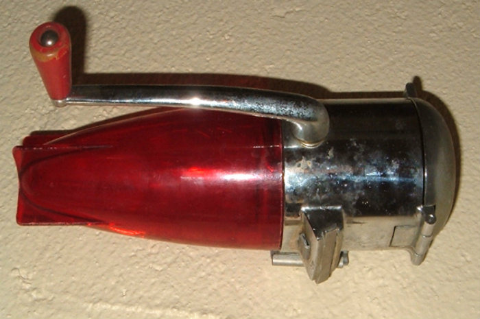 Don't you wish you had this machine for when you catch the snow cone bug? The vintage hand-cranked machine produced a fine crushed ice if cranked one way and a rougher chop when cranked the other way.