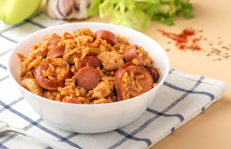 This Creole-style jambalaya is one of the all-time best chicken recipes. Tender chicken breasts and thighs are amped up with smoked sausage and rice that is heavily seasoned with the "Holy Trinity" plus plenty of garlic, basil, rosemary and oregano.