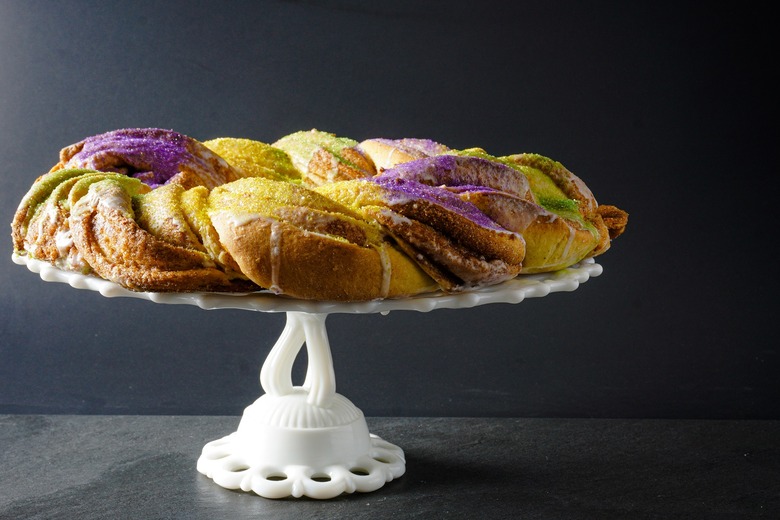 King cake is a Mardi Gras tradition, and New Orleans' signature colors (green, gold and purple) decorate the top of this sweet bread dough. Don't forget to hide a little plastic baby inside! Whoever finds it gets to bake up this treat for the next year.