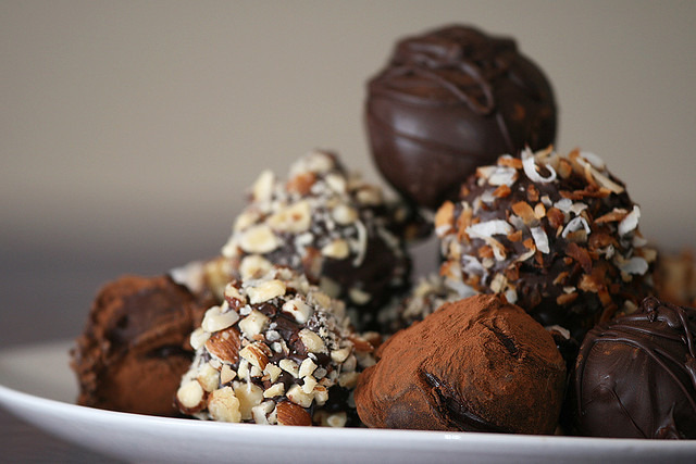 Homemade truffles are easy; just make a thick ganache by melting chocolate in heated heavy cream (you can even add a little butter if you'd like to make them extra creamy), cool the ganache, and then roll it into balls. Make your truffles even better by replacing part of the heavy cream with eggnog.
