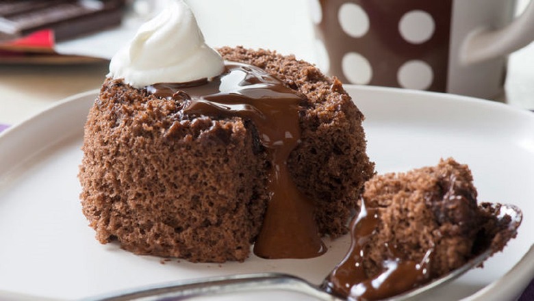 Lava cakes are a notoriously difficult dessert, but this lava mug cake is surprisingly easy to pull off. Just add a few pieces of a chocolate bar to the center of your batter before putting it in the microwave for one minute. Once the microwave beeps, you'll have a delicious treat with chocolate oozing in the middle.