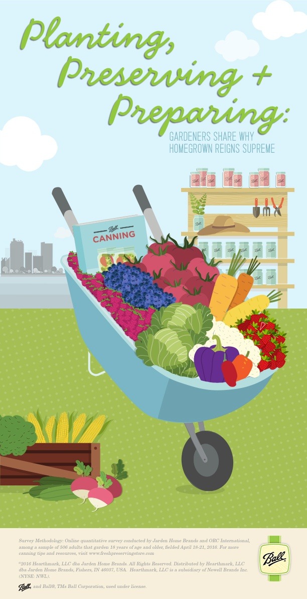 Gardeners are anything but wasteful as they take extra steps to preserve yearly crops. In fact, 77% have canned, frozen or dehydrated foods. Why? 46% of gardeners want to eat foods at their season peak freshness year-round and 54% like to know exactly what is in their food. The Ball® Interactive Canning Map resource can come in handy as it points out what foods are in peak season in your region.