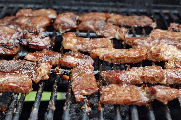 Sweet and salty flavors are highlighted in this Grilled Jerk Beef recipe by Platter Talk. Strips of beef are stacked between layers of brown sugar, salt, and pepper, and then they marinate in their own juices overnight. Find the original recipe here.