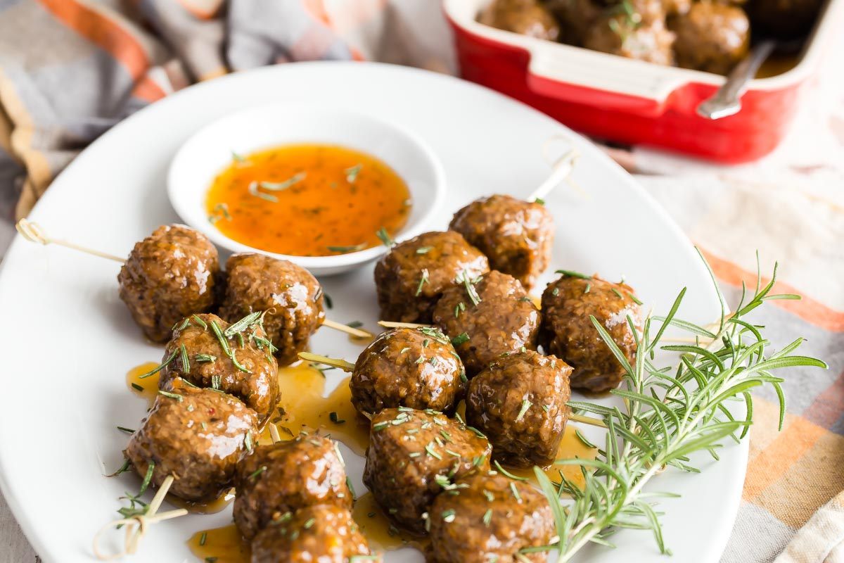 This sweet and tangy version of Smart Menu Veggie Meatballs is guaranteed to get the party off to a memorable start. For the sauce, mix apricot preserves, veggie stock and balsamic vinegar. Serve on mini skewers, garnished with fresh rosemary. Holiday on a stick!