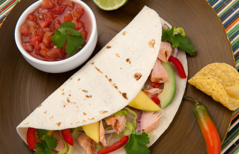 Alaska Salmon Tacos With Mango Salsa and Avocado Cream