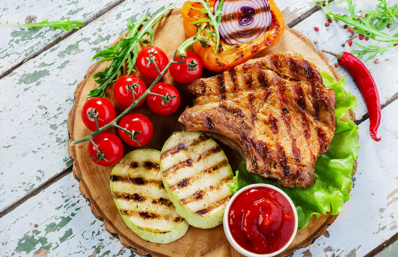 Thin-cut bone-in lean pork rib chops cook in minutes and offer a hearty, meaty richness that can be extra satisfying. A pantry spice blend of dried oregano, thyme, and paprika seasons the chops, and the browned bits left in the pan later flavor the zucchini as it sautés. Choose chops that don't have striations of fat in the meat; if they have a large fat cap, simply trim it off before cooking. — Melissa d'Arabian, author of Supermarket Healthy: Recipes and Know-How for Eating Well Without Spending a Lot