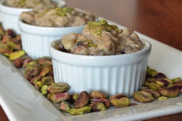 The contrast between the creamy bread pudding and the crunchy nuts, and the mild sweet milk and cream versus the spicy tone of the cinnamon and cardamom makes this dessert irresistible warm or cold. The nut mix you put into the Um Ali is entirely up to your taste; you can use one, some or all of the nuts listed in the recipe. You can also combine puff pastry with toasted phyllo sheets, use phyllo alone, or even croissants for your base.