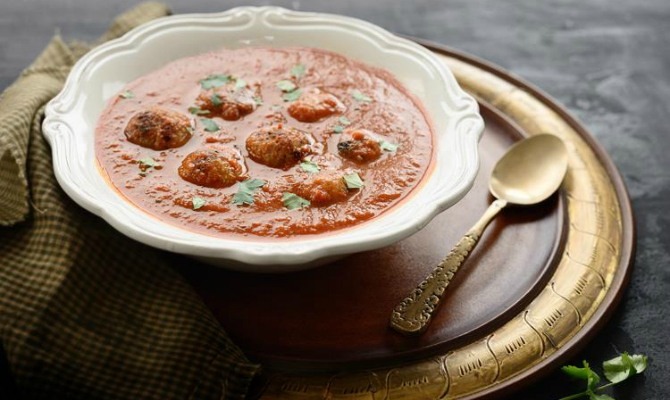 Drop crispy quinoa and potato balls in a rich tomato curry for a hearty vegetarian meal. Click here to see the recipe.