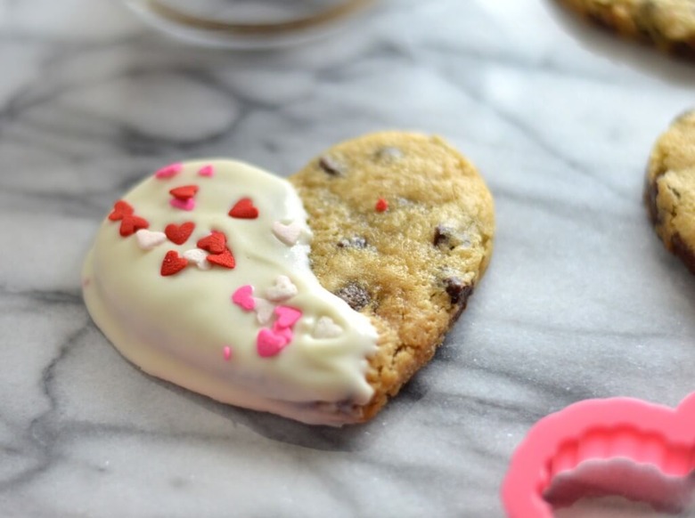 On the process, Citrus Blossom Bliss tells us, "I'd say cook these as individual circle cookies and then cut into individual heart shapes. Or, cook the dough as one giant cookie and then cut from there. I'm all for a giant cookie – all the extra scraps would be perfect for a milkshake my face."