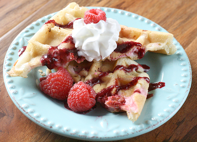Have family staying over for the long weekend? Wake them up with these raspberry and cream stuffed waffles topped with blueberries. It's a great way to get everyone ready for a day of fun in the sun!