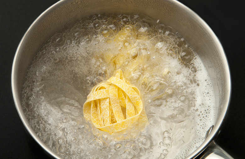 A secret restaurant cooks won't tell you is that pasta water is basically liquid gold. You may be tempted to throw the water down the drain as soon as your spaghetti is al dente, but don't! Pasta water is surprisingly flavorful and delightfully starchy. Reserve some of it to help thicken your sauce and help tie the whole dish together. Not doing so is just one of the ways you're making pasta all wrong.