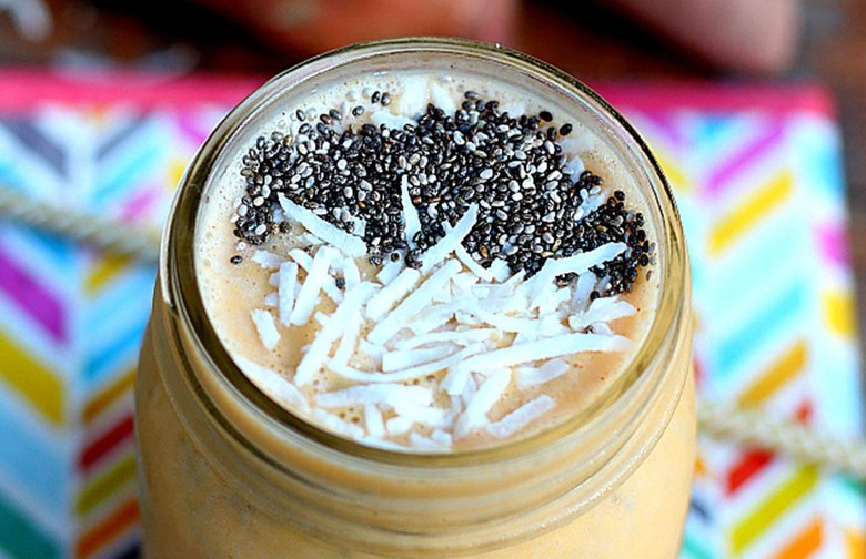 Sweet potatoes are definitely healthy but are hardly ever featured in smoothies.  This recipe from Delightful Mom Food combines the caramel flavor of a sweet potato with fall flavors like maple syrup, cinnamon, and nutmeg.
