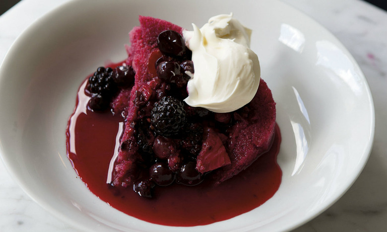 Nothing says English summer to me quite like a summer pudding, and I return to this recipe year after year, when the beautiful soft summer fruits are at their peak. I make a sponge rather than use the more traditional stale bread — the extra effort is well worth it. I also use more currants than other fruits as they keep the sweetness in check. Serve each portion topped with a dollop of crème fraîche or thick cream. — Skye Gyngell