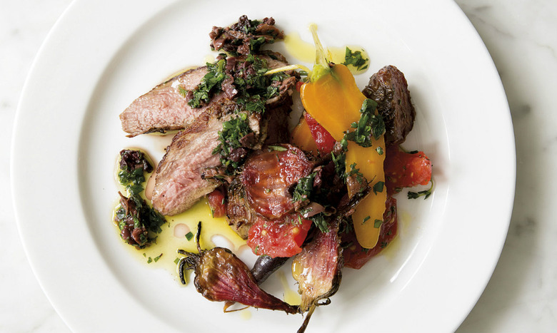 We often have grilled lamb on the menu at Spring in one guise or another. Sometimes we rub the surface with spices to give it a lovely Middle Eastern feel, which works so well with the flavor created from the flames on the grill. Here the lamb is just really well-seasoned on the outside, allowing the sweet, earthy flavors of young carrots and beets to shine through. — Skye Gyngell