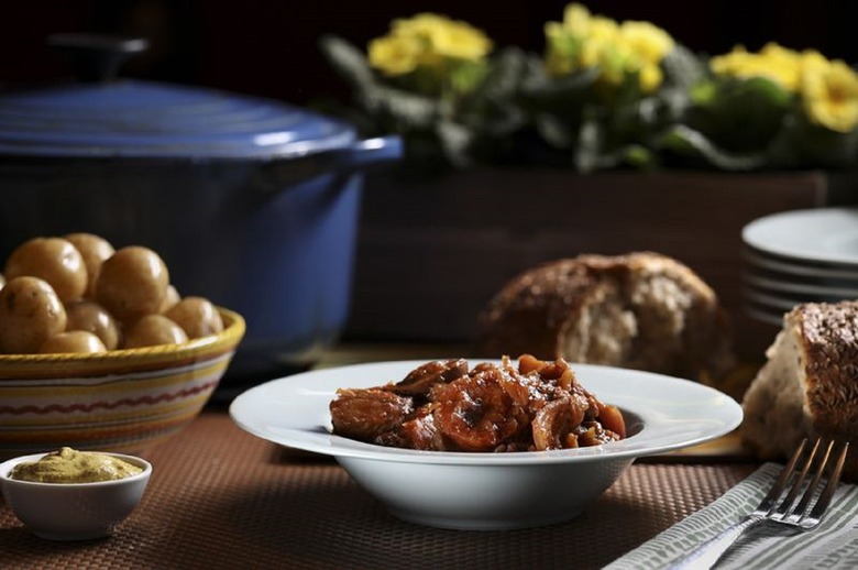 This French-style beef stew is the perfect way to settle down after a long day of working. It's good to know a basic cooking method for this recipe, like how to sear so you can get that browned, tender beef that this dish requires. This stew is slow-cooked with a vegetable medley in a brown sauce that is great to serve over pasta or mashed potatoes.