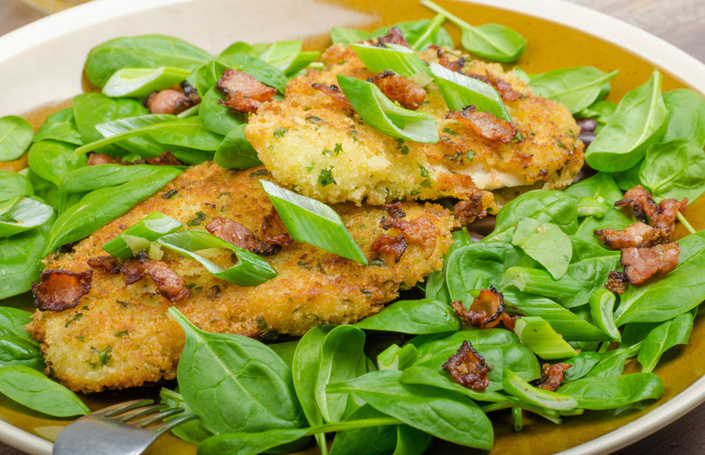 It's a good idea to add protein to your salad, but not the fattening breaded kind. Breaded proteins have extra calories and fat, so stick to grilled options when you can.