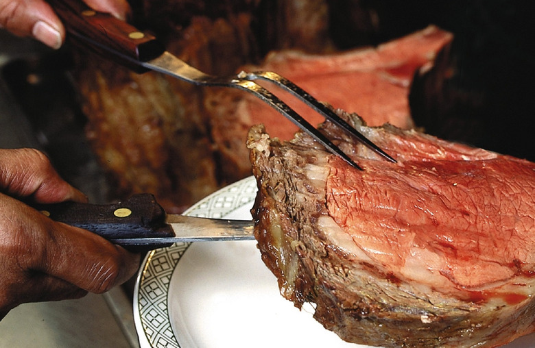 To make the dish, start by spreading rock salt on the bottom of a roasting pan. Trim fat from the roast, leaving about 1/4 of fat on the top. Rub the rib with seasoning salt then roast it for 30 minutes at 450 degrees. Reduce the temperature to 350 degrees and cook for an additional 30 to 90 minutes, or until the roast reaches an internal temperature of 120 degrees for rare. Use a meat thermometer to make sure it comes to temperature. Be careful not to overcook your prime rib.