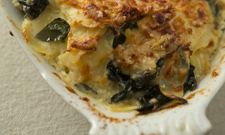 Eating spinach sometimes leaves a funny feeling in peoples' mouths, caused by the oxalic acid in the leaves. Nigel Slater, a British food writer I admire, calls it "furry teeth." Lemon juice can soften that effect and mellow its flavor. These crêpes are a wonderful way to highlight many garden greens—kale, collards, chard—and are filled here with potatoes, too. I often add other ingredients to the filling, such as grains, peppers, fish, or meat. — Michael Anthony