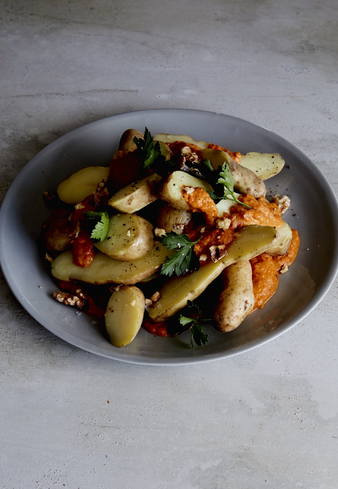 — Red Pepper Rouilled on Kipflers With Toasted Walnuts