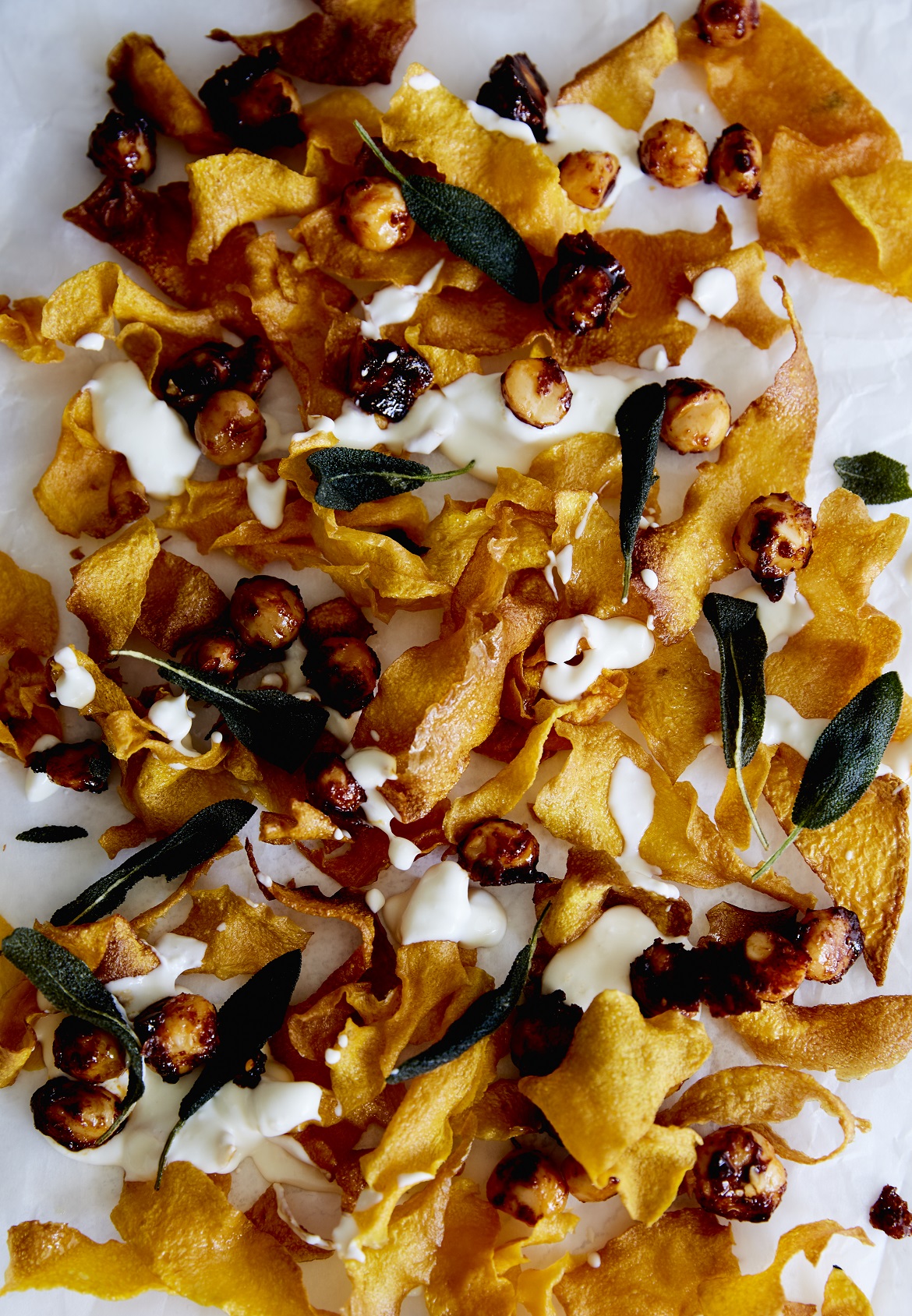 — Deep-Fried Pumpkin Crisps With Honey-Spiced Macadamias
