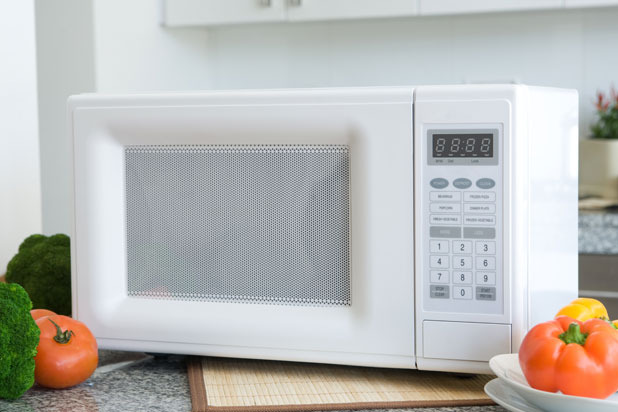 Mix ½ cup white distilled vinegar with ½ cup water in a heat-proof bowl. Turn the microwave on high and bring it to a boil. The baked-on food particles will loosen and be easier to wipe clean, and the odors will dissipate.