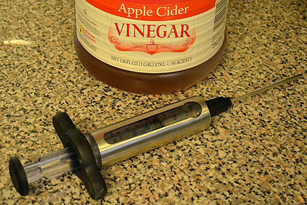 Tenderize meats by adding white distilled vinegar directly into the meat or adding it to marinades or recipes that require the meat to be cooked slowly.