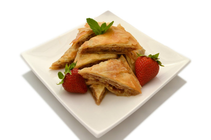 This classic Greek dessert features phyllo dough, spices, honey, and walnuts.