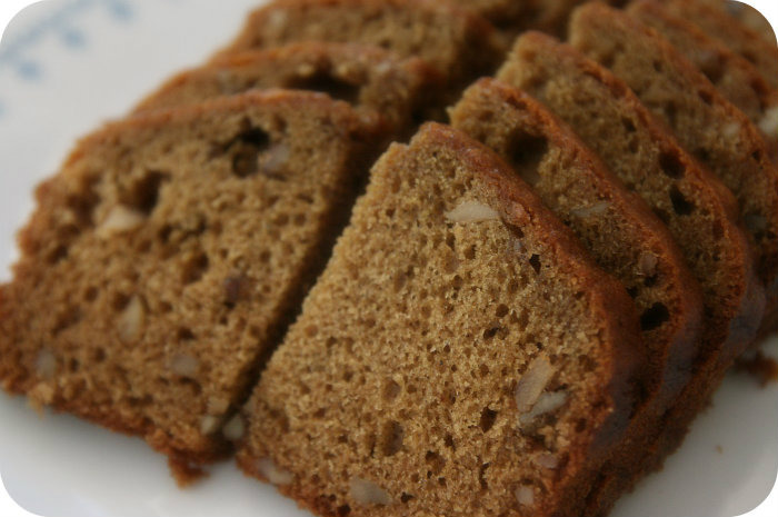 This pumpkin bread uses honey, cinnamon, nutmeg, and cloves for a rich fall flavor.