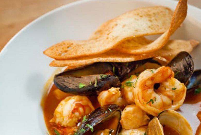 A perfect version with which to celebrate National Bouillabaisse Day, this recipe, created by Michelin-starred chef David Myers, is made with sea bass, snapper, fresh shrimp, and mussels and is served with a fresh baguette and a garlicky rouille.