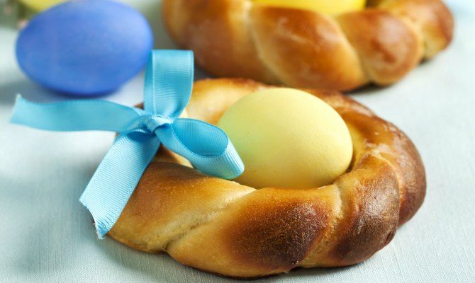 Beautiful, braided bread (studded with colorful Easter eggs) is a special holiday treat. Make individually sized braided breads using this simple technique.