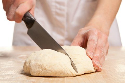 Turn the dough out onto a lightly floured surface and cut it into 6 pieces.